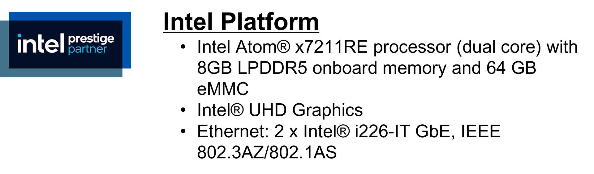 Pocket-Size Edge IoT Gateway with Intel Atom® x7211RE processor, 8/64GB, 2x i226 IT, 2xUSB, 1xM.