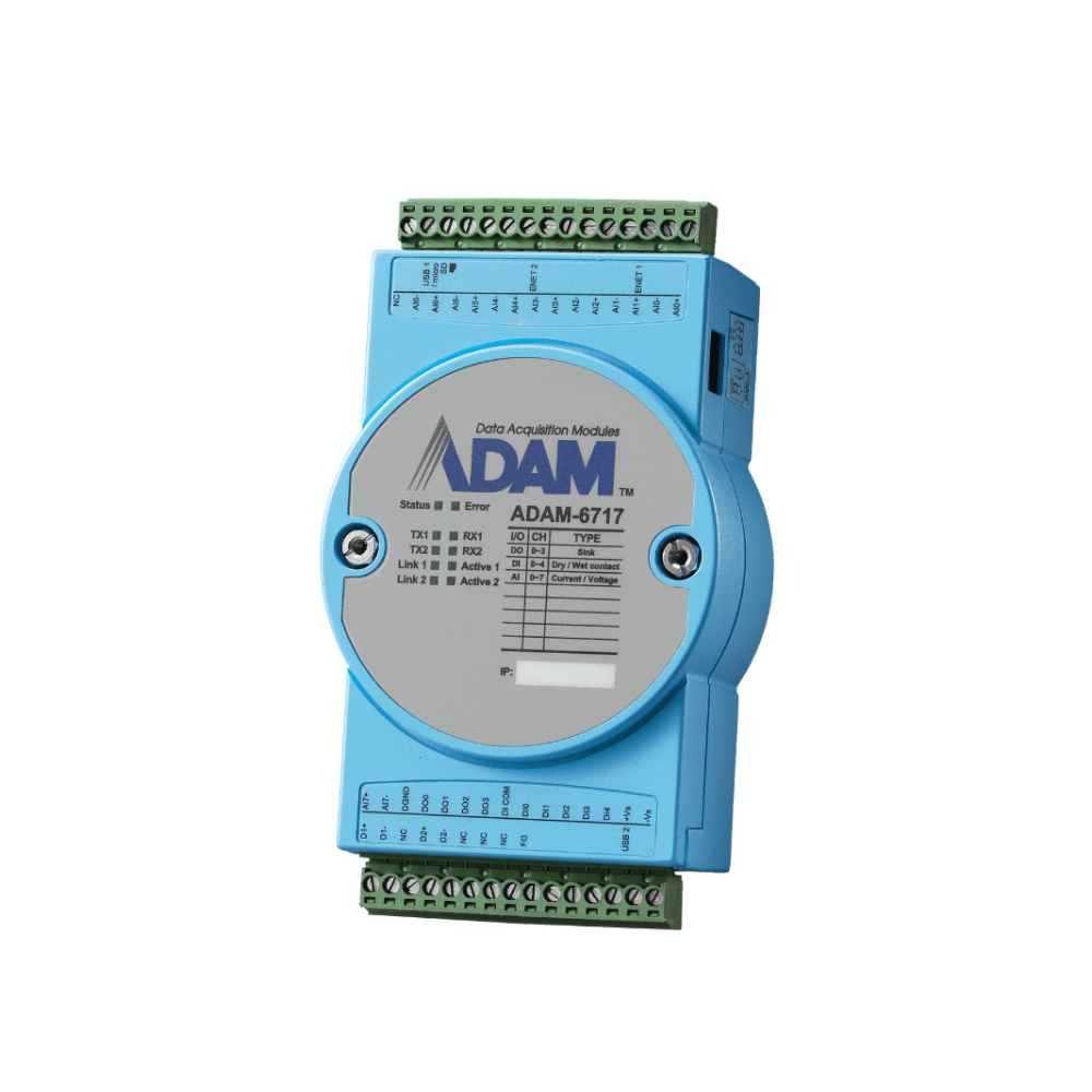 Each battery rack has an ADAM-6717 I/O gateway acting as an HVAC controller and integrating I/O modules and basic computing for critical function management like temperature, control processes, and alarms/events.